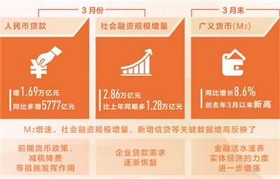 中國(guó)人民大學(xué)重陽金融研究院副院長(zhǎng)董希淼認(rèn)為,總體來看,3月份廣義貨幣增速、社會(huì)融資規(guī)模增量、新增信貸等關(guān)鍵數(shù)據(jù)增高,是前期貨幣政策、減稅降費(fèi)等措施發(fā)揮作用的體現(xiàn),同時(shí)企業(yè)貸款需求也在逐漸恢復(fù),金融活水滋養(yǎng)實(shí)體經(jīng)濟(jì)的力度進(jìn)一步增強(qiáng)。